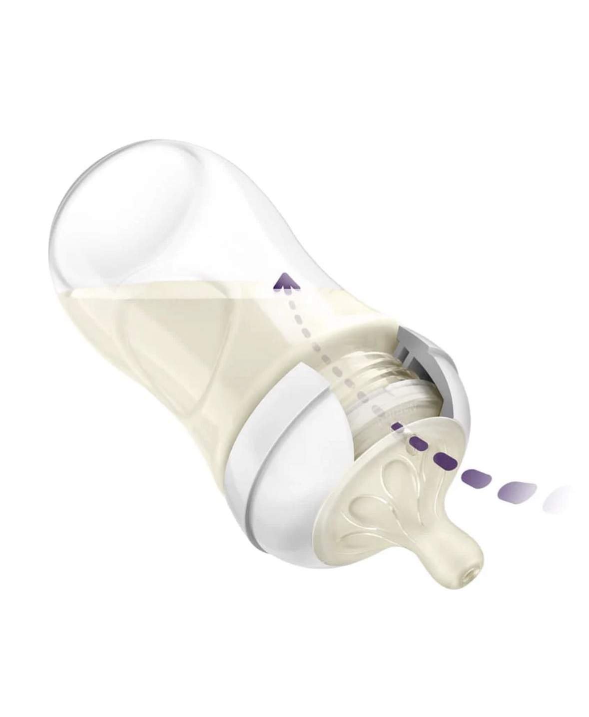 La tétine libère le lait lorsque le bébé tète activement. La tétine Natural Response respecte le rythme naturel de la prise du biberon par le bébé, ce qui facilite la combinaison de l’allaitement maternel et de l’allaitement artificiel. Sa conception unique permet au lait de couler uniquement lorsque le bébé tète activement. Ainsi, lorsque le bébé fait une pause pour avaler et respirer, le flux de lait s’interrompt automatiquement.